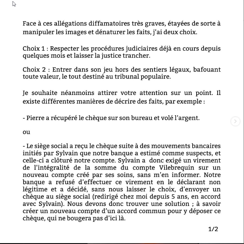 Il dit que tout est de la diffamation qu'il va porter plainte, il est serein sur le dossier et que Sylvain a été jaloux de lui et est très culotté.