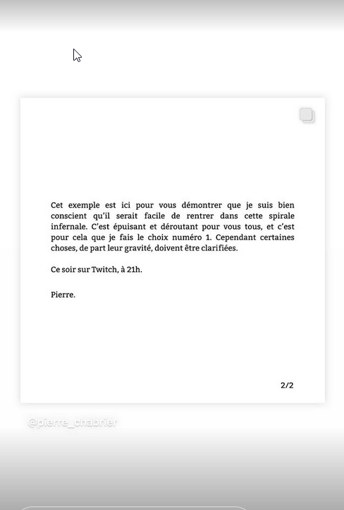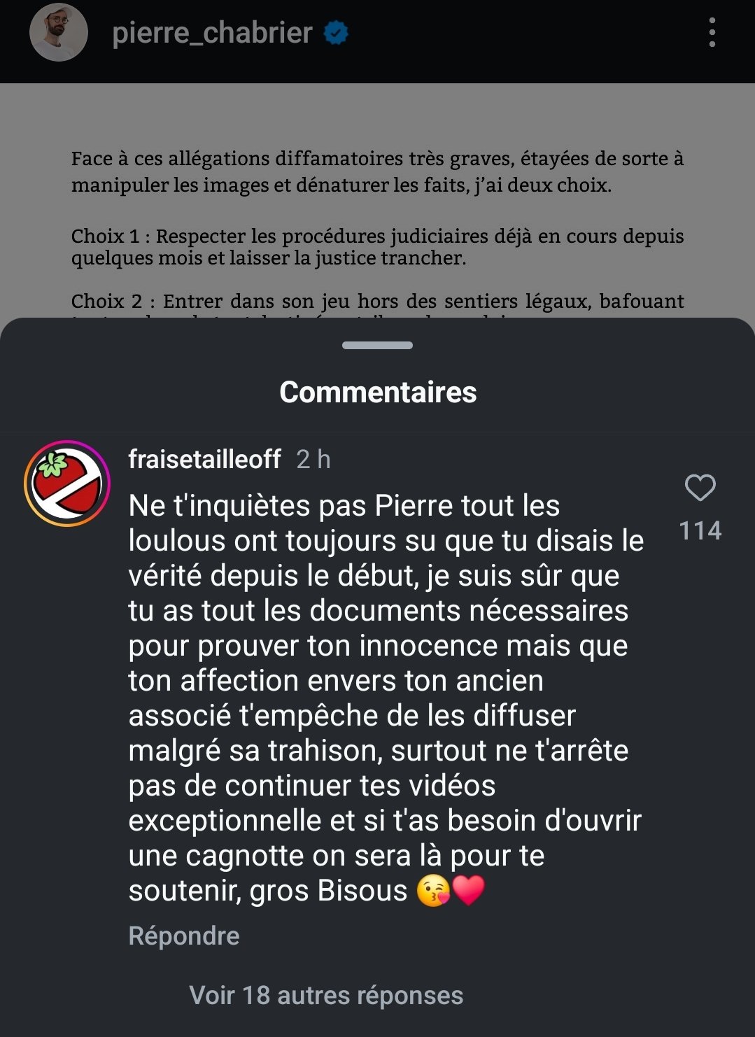J'ai regardé les deux vidéos et honnêtement on saura peut être jamais vraiment qui dit vrai, qui ment. Le plus problable c'est que les deux essaient de manipuler, mais je dirais quand même que la grosse erreur de Pierre c'est d'avoir dégainé le premier, il est à l'origine de ce shitstorm maintenant il faut assumer. ça ne regardait personne que eux deux et leur entourages respectifs ainsi que leur collaborateurs, je pense que la tentation d'attirer l'attention médiatique à été trop forte, donc je ne prêcherai ni pour l'un ni pour l'autre.
