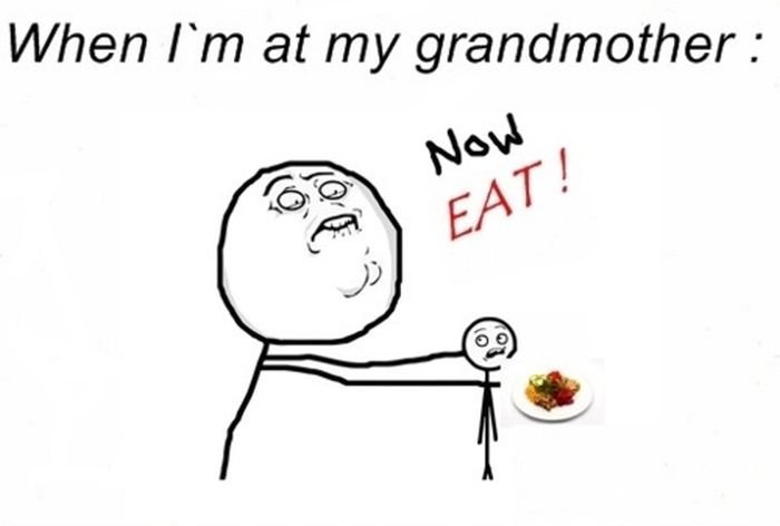 Et aussi elle te force à en reprendre en disant que tu ne manges rien, alors qu\'elle même n\'a pas le quart de ce que tu as déjà mangé.