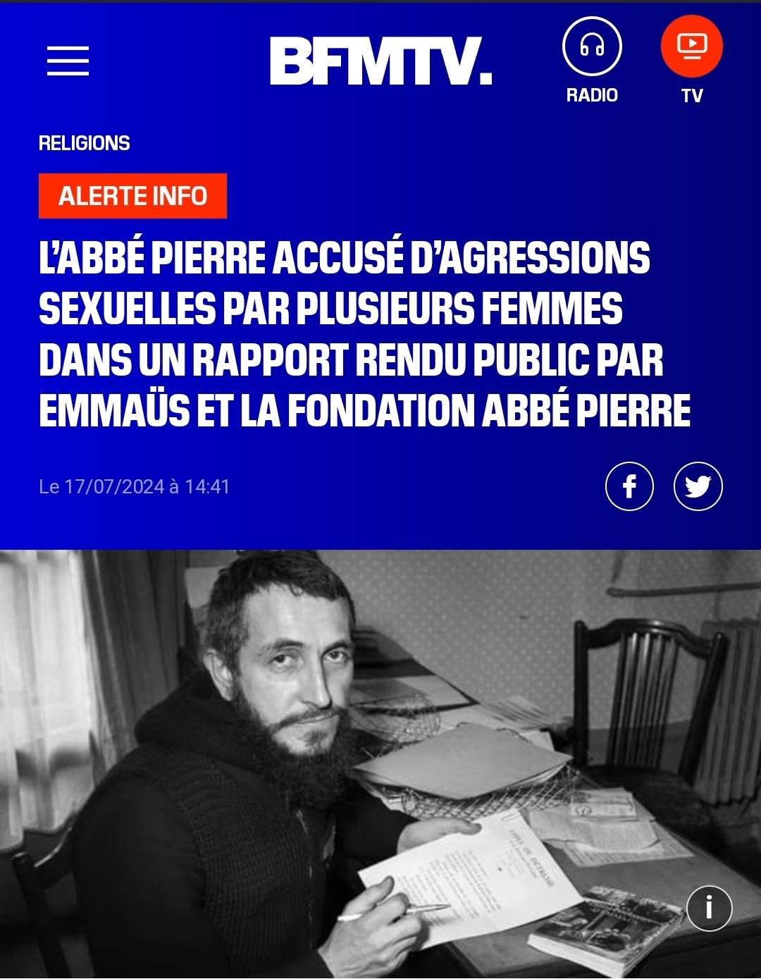 2) C'est pas le cabinet Egaé et la grande gauchiste qui pilote. C'est littéralement le mouvement emmaius (dont la fondation abbé pierre) qui commande cette enquête au cabinet et qui choisit ensuite de publier le rapport en estimant qu'il y a toutes les raisons de croire les victimes.
