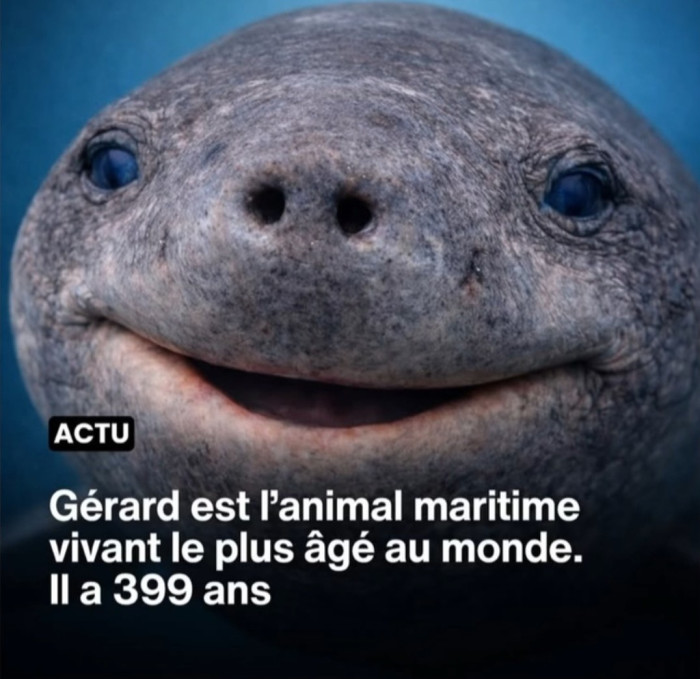 Gérard est l'animal maritime vivant le plus âgé du monde. Il a 399 ans, il est un véritable fantôme des profondeurs... Et un recordman discret. Ce géant des eaux glacées de l'arctique peut vivre en moyenne près de 270ans, mais certains individus dépasseraient les 400, voir 500 ans.