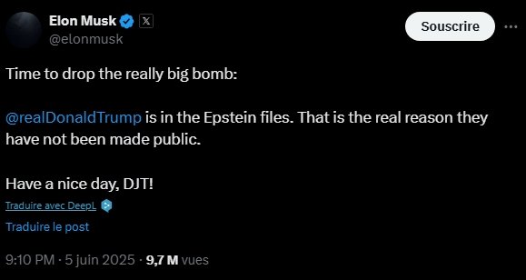 Mais bon, on sait tous que c'est (éventuellement) un secret de polichinelle cette histoire, mais que ce soit Musk qui balance ça en toute détente, ça reste assez cocasse !