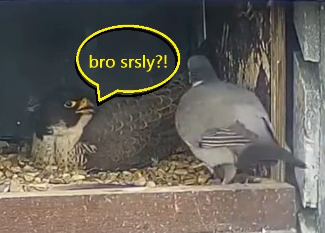 Idée de génie: être un pigeon et aller déranger un faucon crécerelle en train de couver. Bien ouèj!