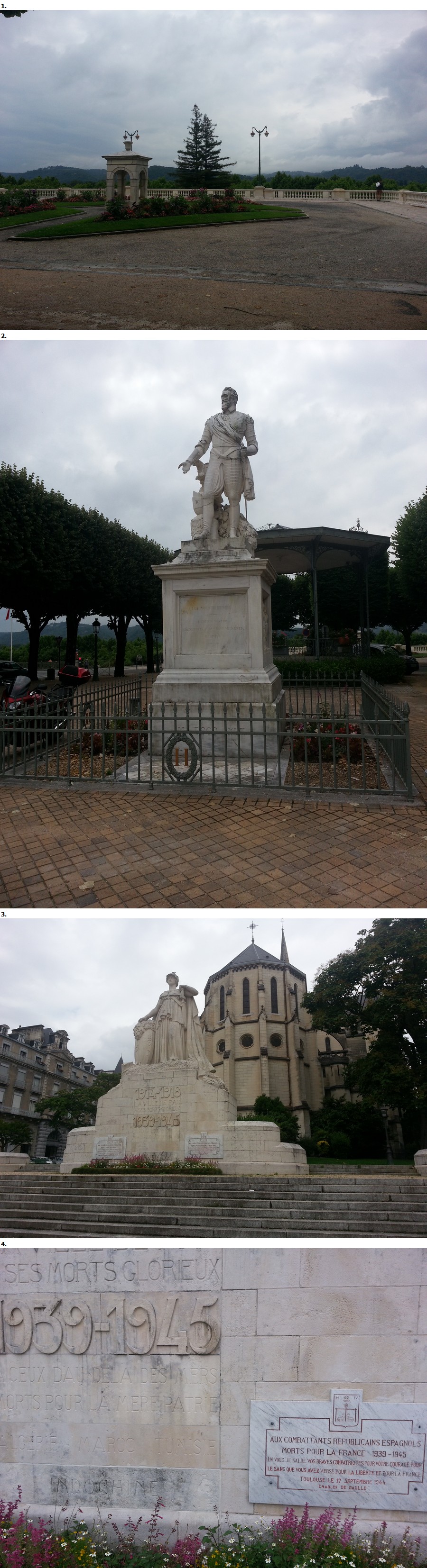 La 3, monument aux morts avec la cathédrale en arrière plan, les Pyrénées se trouve derrière.