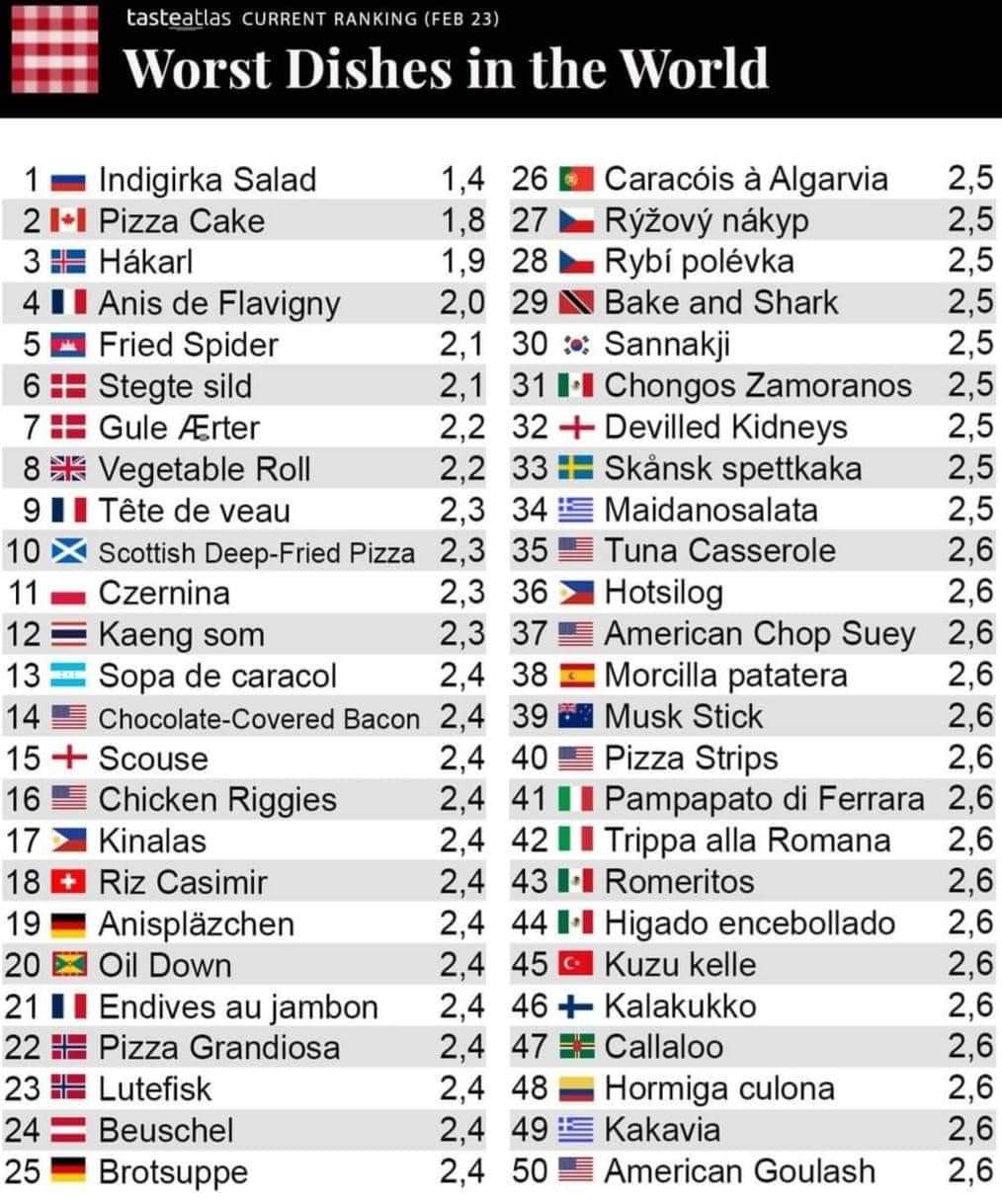 S'ils connaissaient la gastronomie chinoise il y aurait de quoi rafler les 50 premières places. Entre le penis de mouton, la trachée de boeuf aux poireaux, la salade de langues de canard, la tête de veau au piment, etc etc