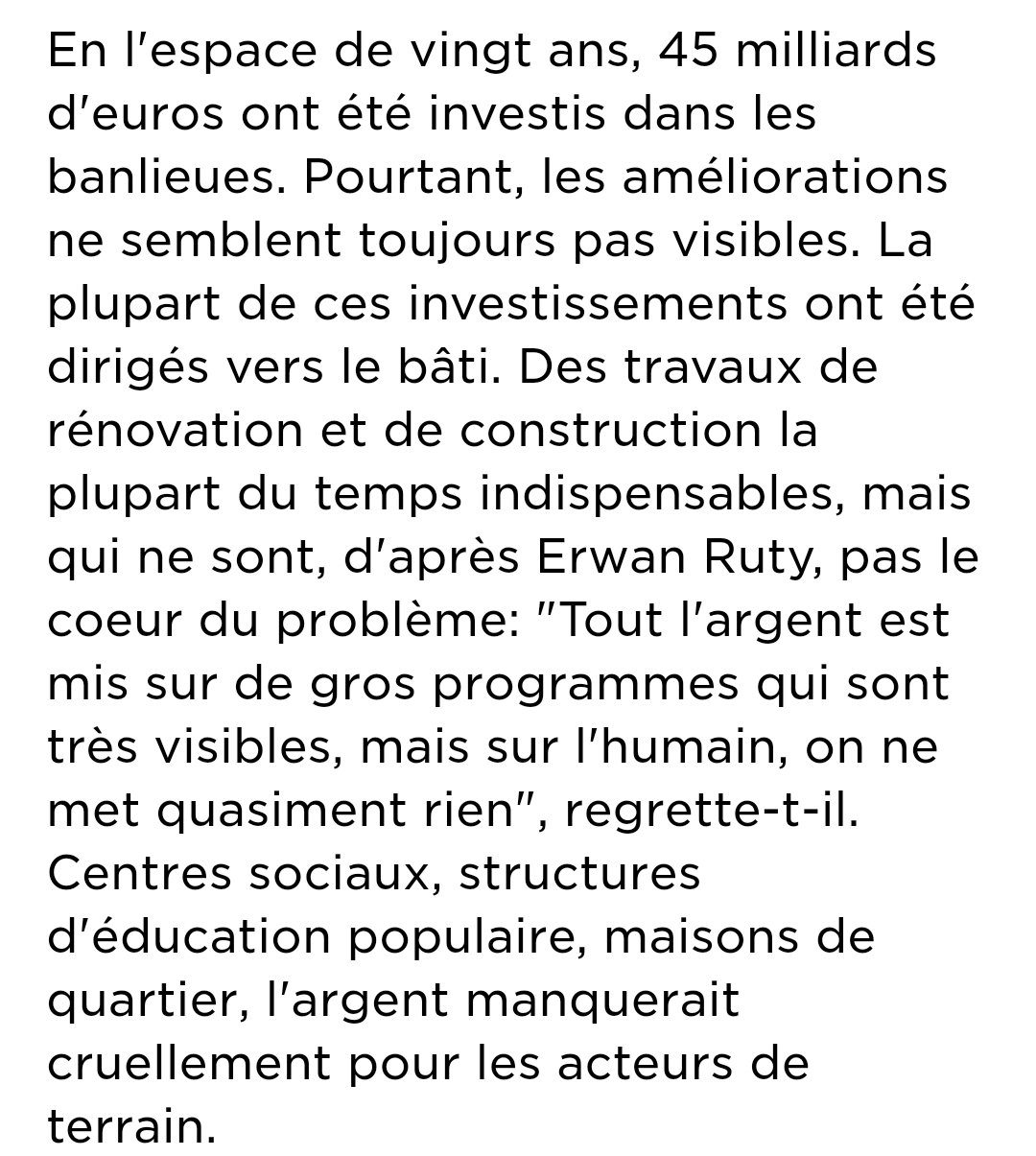 Encore une fois, selon moi, les quartiers souffrent d'avantage de la délinquance de 10% d'enculé, que du manque d'investissement dans ces endroits la.
