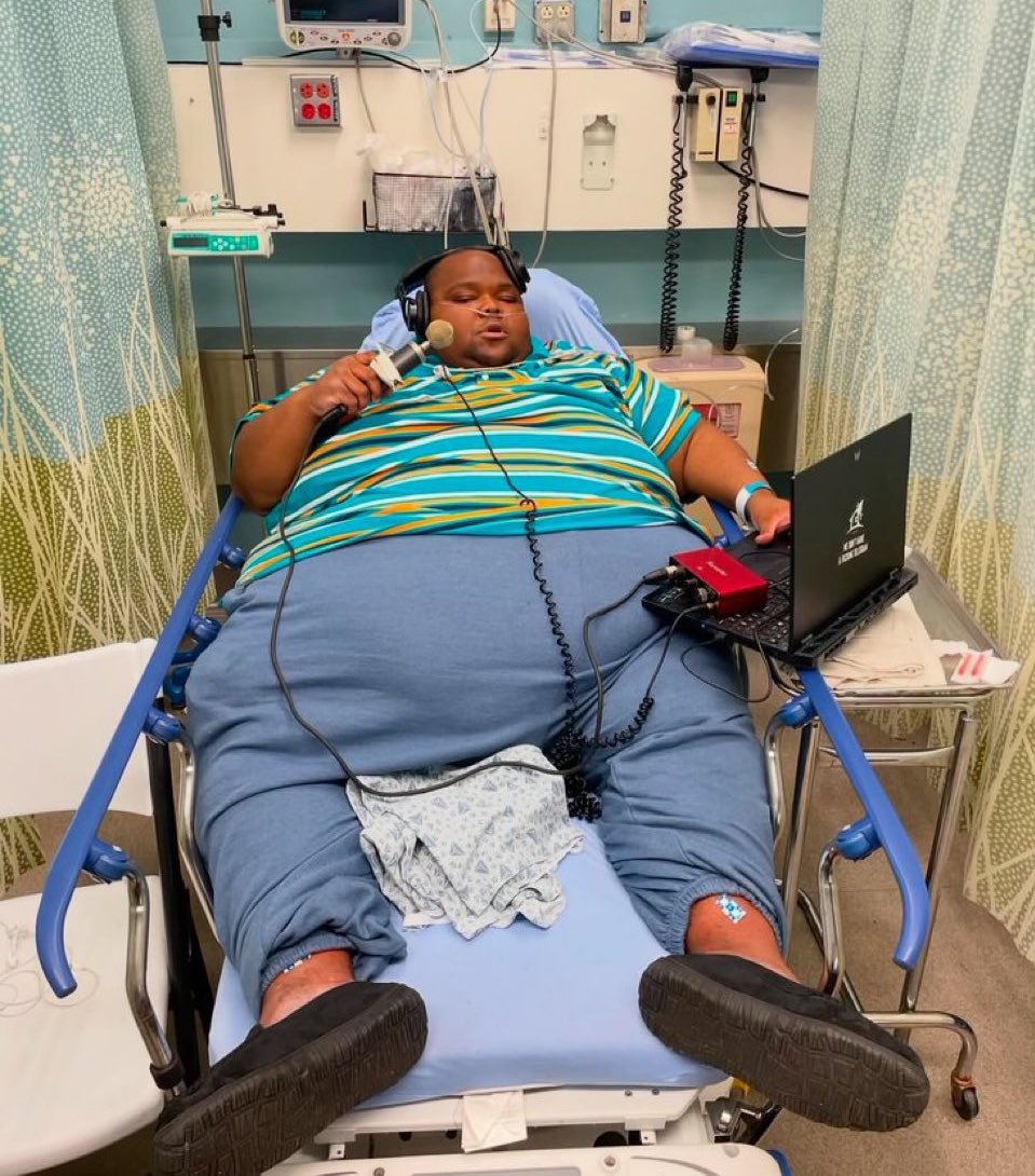 On dirait plutôt qu'il est aux urgences, et il doit bien casser les couilles à tout le monde à pousser la chansonnette.
