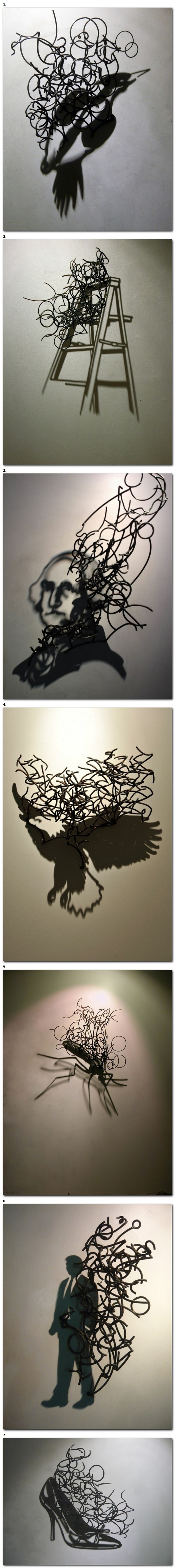 Larry Kagan fabrique des enchevêtrements de fils métalliques qui produisent des ombres super réalistes de divers animaux et objets.