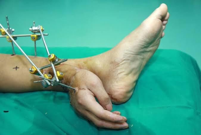 NSFWEn 2013, un chinois s'est fait transplanter sa main sur sa cheville pour ne pas interrompre l'apport en sang. On le lui a greffée sur son bras un mois plus tard, avec succès.