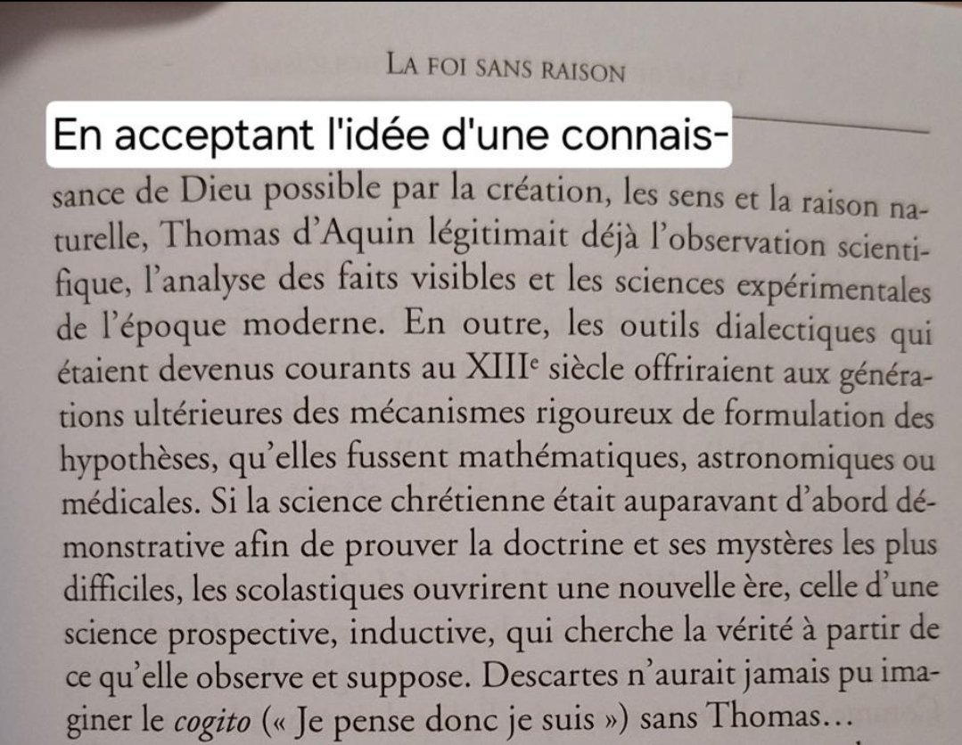 C'est la pensée chretienne qui a permit l'avènement de la pensée scientifique moderne. De par sa conception unique du monde et de son envie de comprendre l'œuvre de Dieu (cf livre d'y professeur d'histoire de la sorbonne ci contre)
