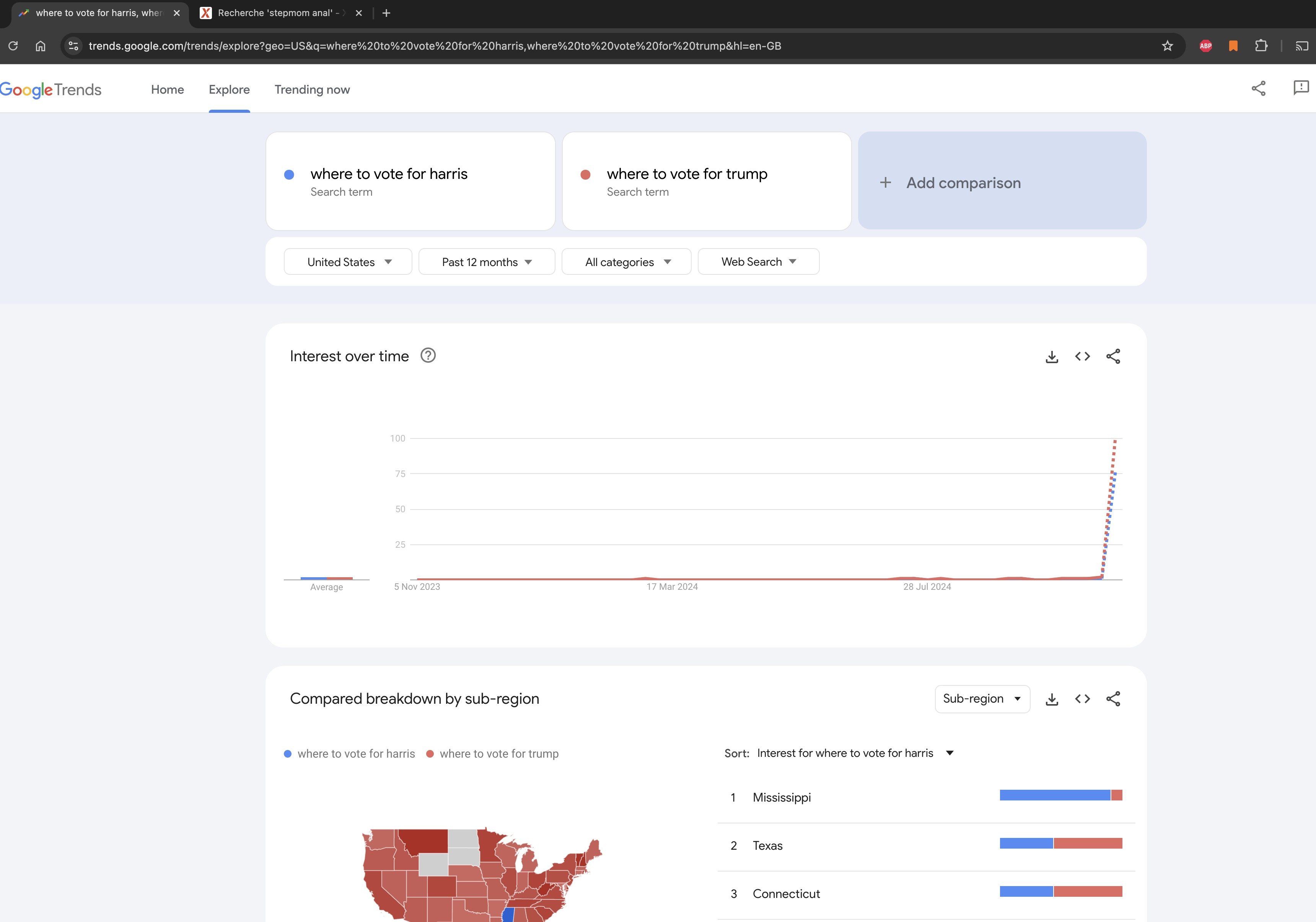 Oui la recherche principale ça doit être "where to vote" ou "where to vote near me" mais ça reste un drôle de "bug" vu l'écart entre les deux requettes.