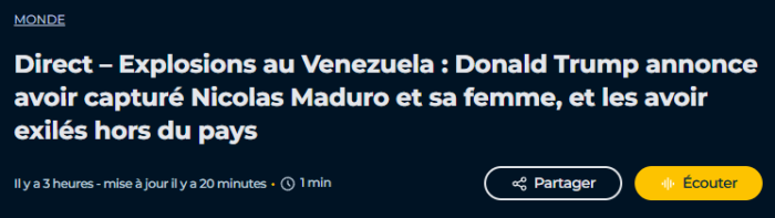 Il n'existe par contre apparemment aucune confirmation indépendante concernant la capture de Maduro et sa femme.