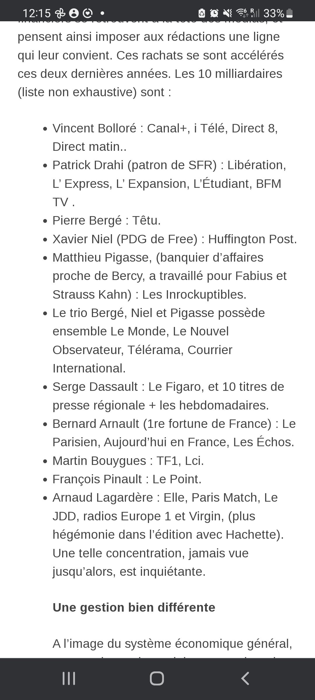 parmi la liste des médias cités dans mon com' lesquels sont véritablement des médias de gauche ? Pour quelles obscures raisons nos pauvres milliardaires ne ferait pas appliquer la ligne éditoriale qui leur convient le plus dans les journaux qui leur appartient, comme récemment le JDD par exemple ?