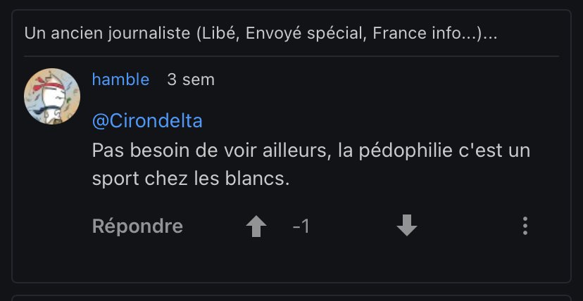 C'était a titre d'exemple sachant que tu fais le rapport avec les blancs en fonctions des faits divers fais pas le mec outré t'as bien compris.