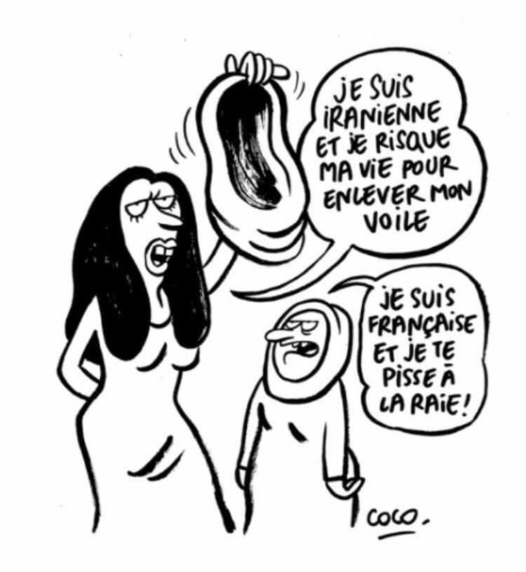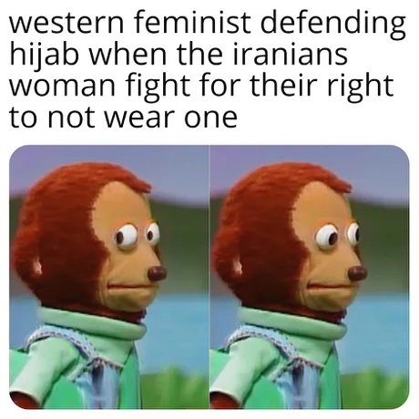 Je corrige "Féministes de l'ouest défendant le droit à la femme de porter ce qu'elle veut quand les femmes iraniennes se battent pour leur droit de porter ce qu'elles veulent".