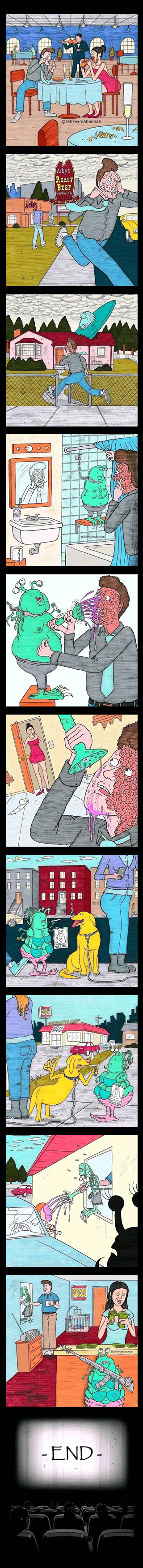 Il rentre chez lui où il a une alien dont le lait soigne ça miraculeusement.