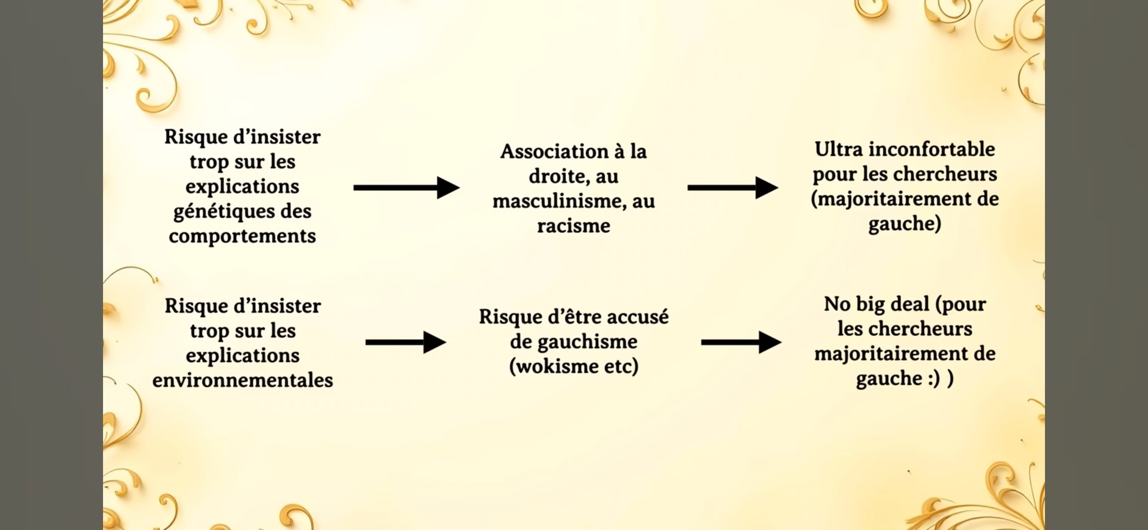 Si il s'avère que le contenu qui se veut scientifique est en réalité un pamphlet anti-woke avec les biais idéologiques et le manque de rigueur qui va avec, est-ce que tu crieras toujours à la censure ?
