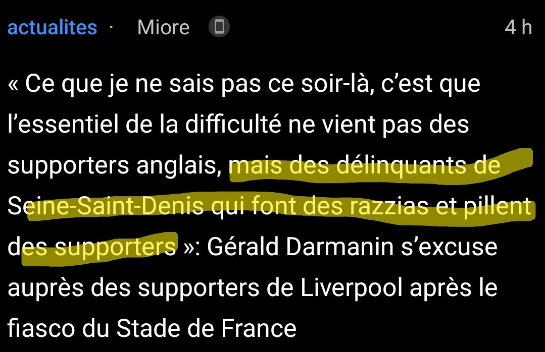 Oui ce sont les propos de Darmanin hein... Il va accuser la Terre entière avant d'admettre ses fautes et responsabilité dans cette affaire...