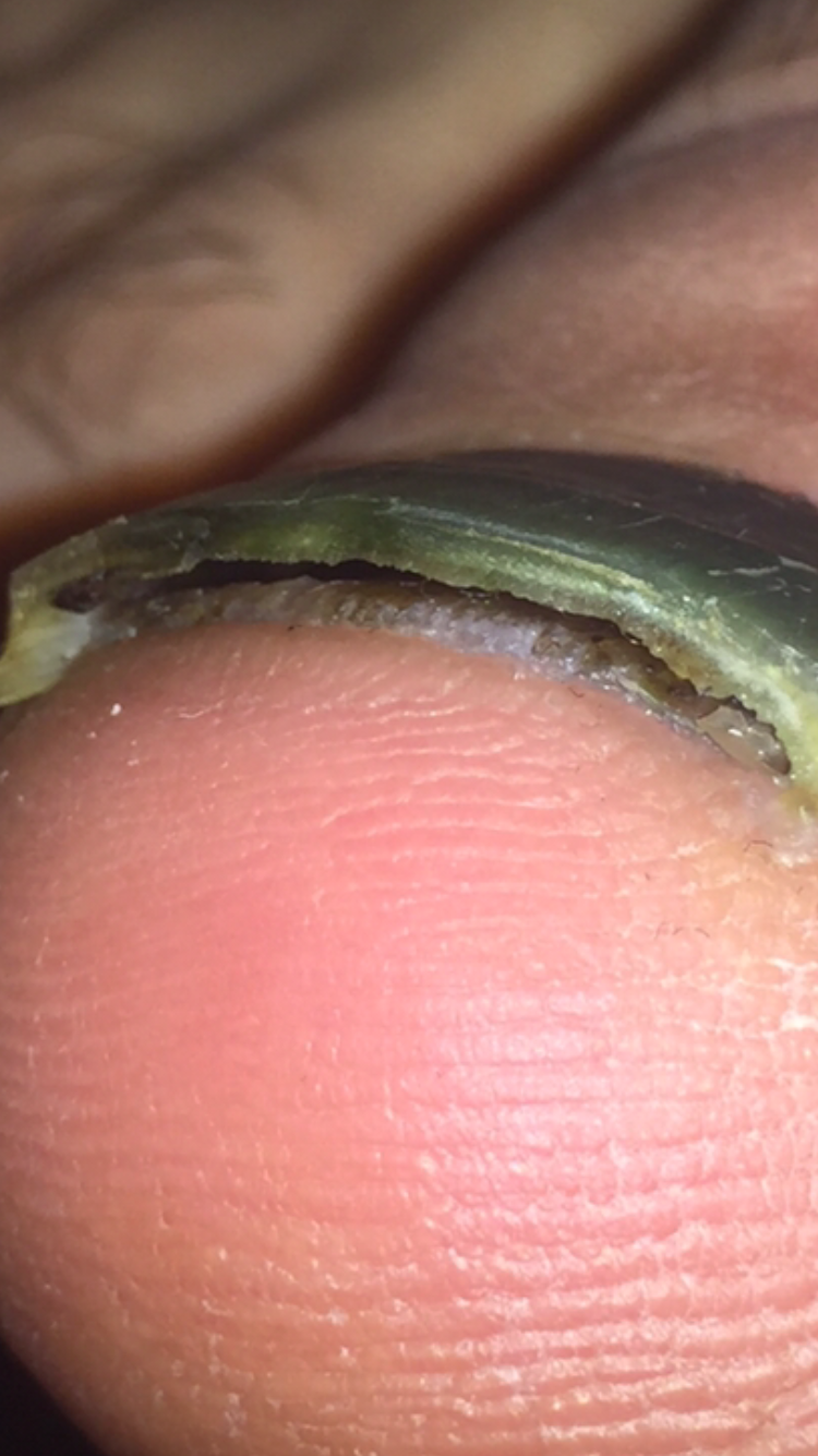 Mettons l'ongle de coté, tu as vraiment des pieds immondes, désolé je me devais de le dire...