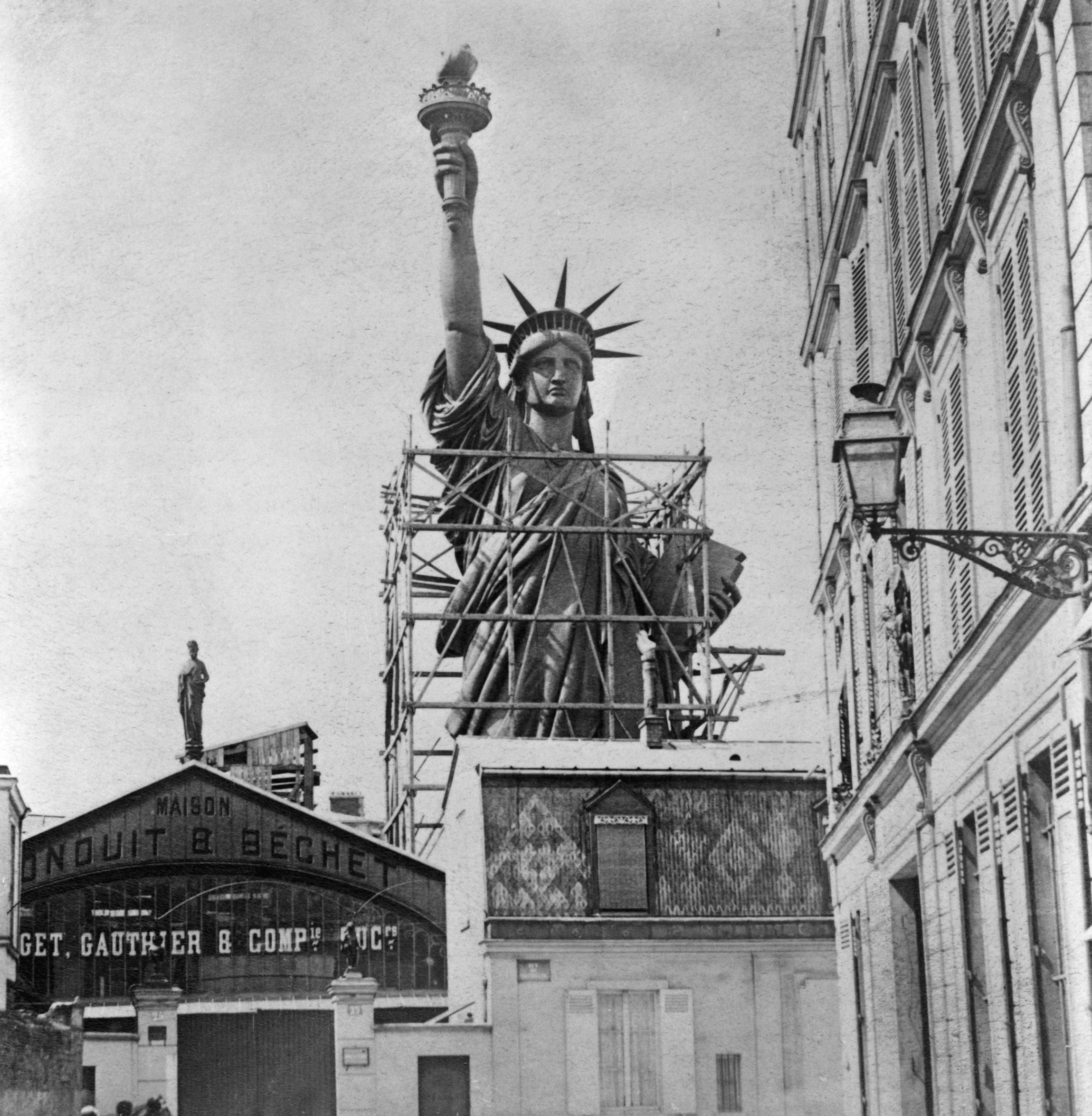 Statue de la liberté avant oxydation. Paris XVII, 1886. Colorisée.