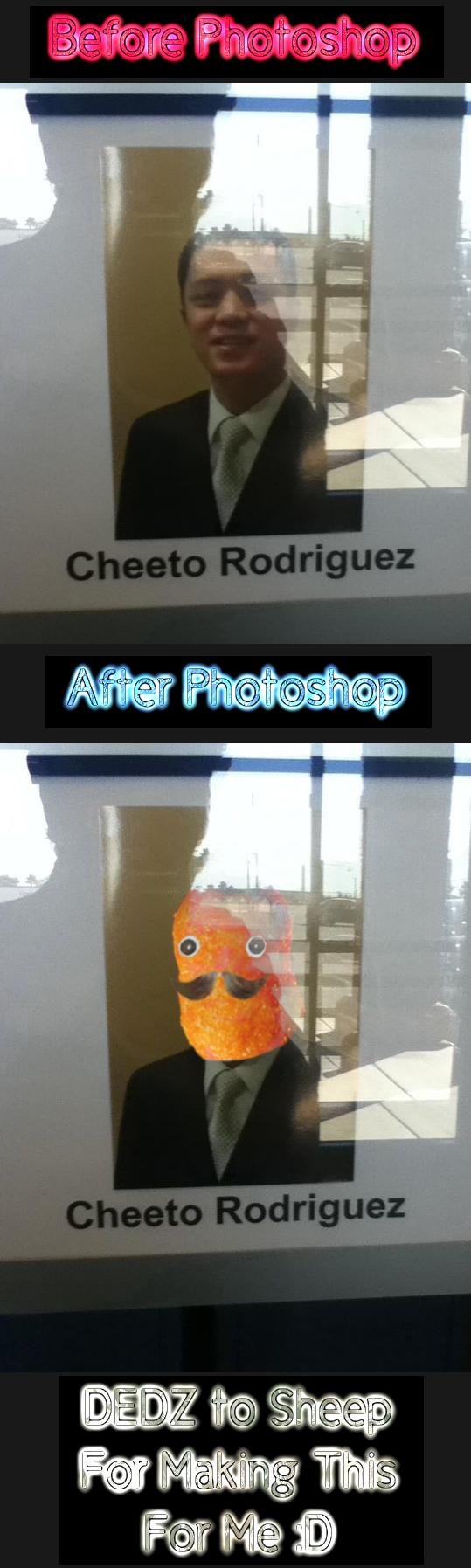 This is legit. I went to a CHASE bank on Tropicana & Jones over the weekend and the teller there was named Cheeto Rodriguez. I thought \"Oh man, if he had the Cheeto face, this would be an epic pic.\" LOL. I thought it was funny to see this so I hope you all like it too.
