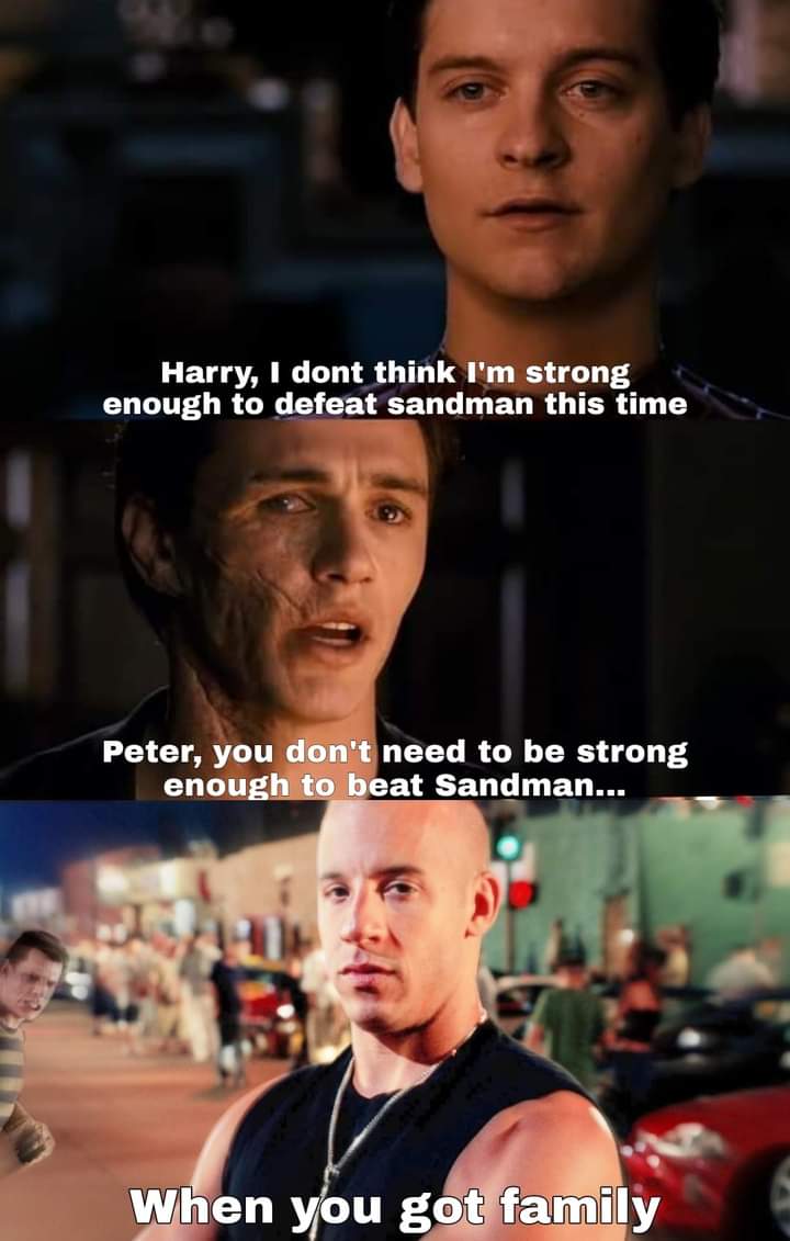 une invasion de mêmes sur dom de fast and furious qui peut battre n'importe qui grâce à la famille...