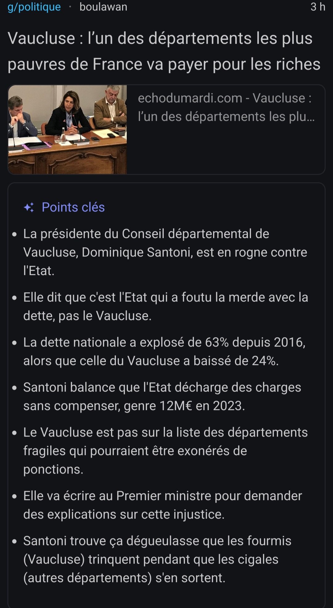 Si elle est pas contente elle a qu'à se présenter en politique.
