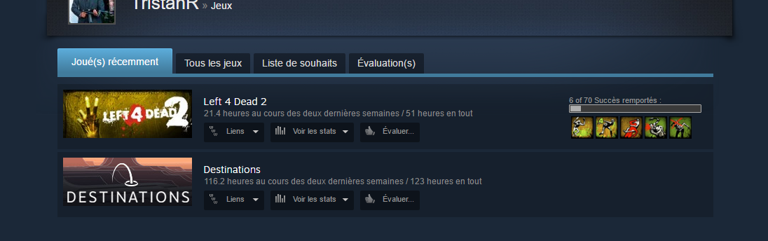 Je me suis dit que ça peut etre normal, en tant que dev il à un jeu modifié avec des truc de futures mises à jour... Sauf qu'en temps normal un jeu modifié(moddé) prend aussi en compte les heures donc c'est que le truc auquel il joue doit être vraiment différent de l4d2 (au niveau de la structure)