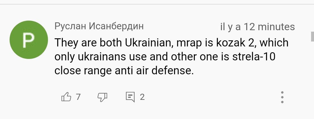 Je ne m'y connais pas assez en véhicules blindés - pas du tout en fait -, mais d'après les commentaires ça pourrait être un tir allié de deux véhicules ukrainiens. Ce qui explique pourquoi ça ne va pas plus loin.