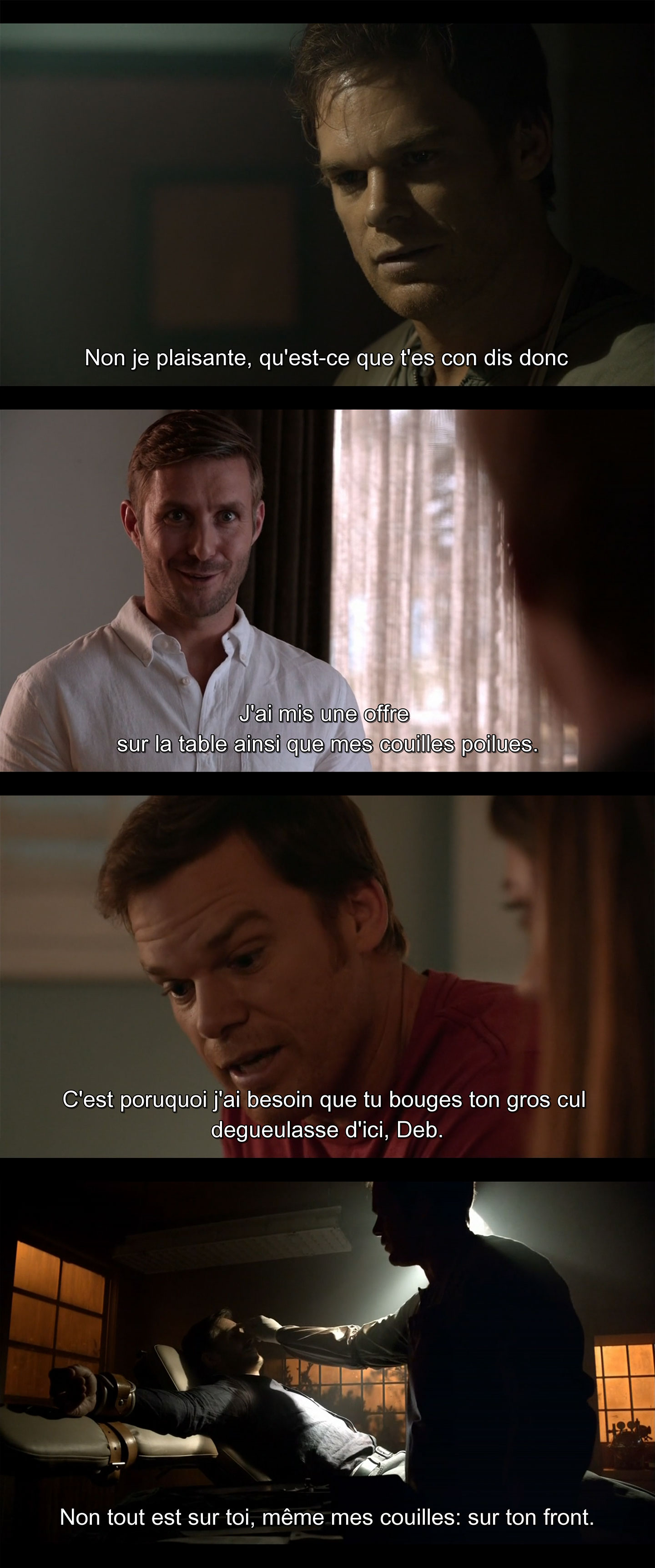 C'est possible, cette saison est chiante (avis perso), il n'y a rien de Dexter pour moi dedans. (J'ai laché depuis l'épisode 8, j'attends de me faire spoil la fin ou je prends mes couilles à deux mains et me ferait les derniers épisodes d'un coup.)