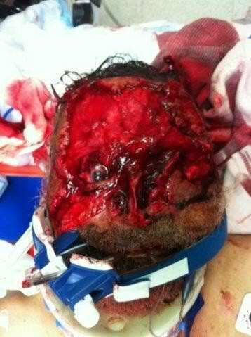 Sur une photo publiée par une journaliste américaine, que nous refusons de diffuser ici à cause de son caractère choquant, on aperçoit un visage barbu, rouge sang, sans peau et sans forme, sans bouche et sans nez. Dans l\'oeil restant de la victime, grand ouvert, on lit sa frayeur. Dans un état critique au Jackson Memorial Hospital, elle est sous perfusion et ses jours sont toujours en danger. \"