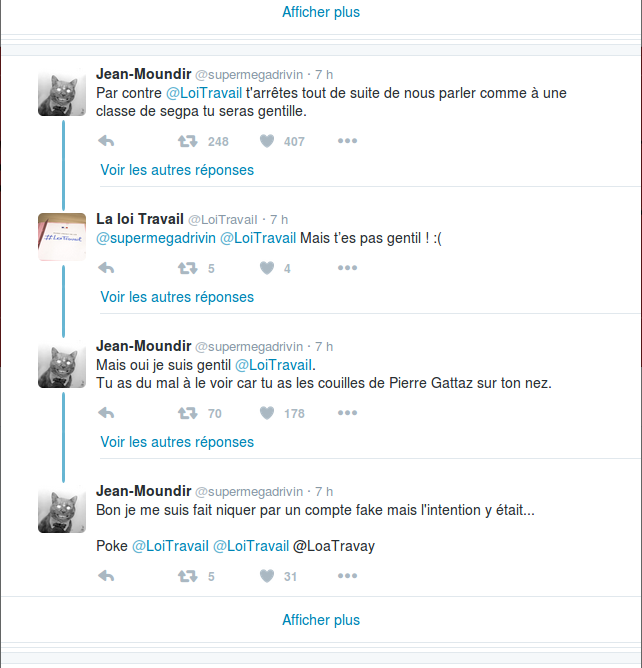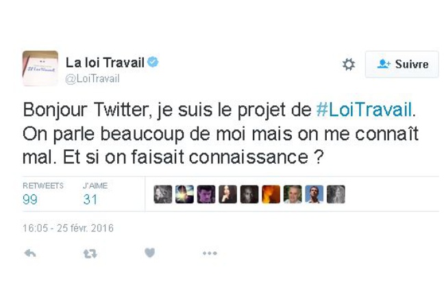 Leur but ce n'est pas d'avoir un compte twitter que tout le monde kiff mais un compte twitter suivi pour pouvoir mettre des liens qui expliquent (selon eux) pourquoi la loi du travail serait une bonne chose.