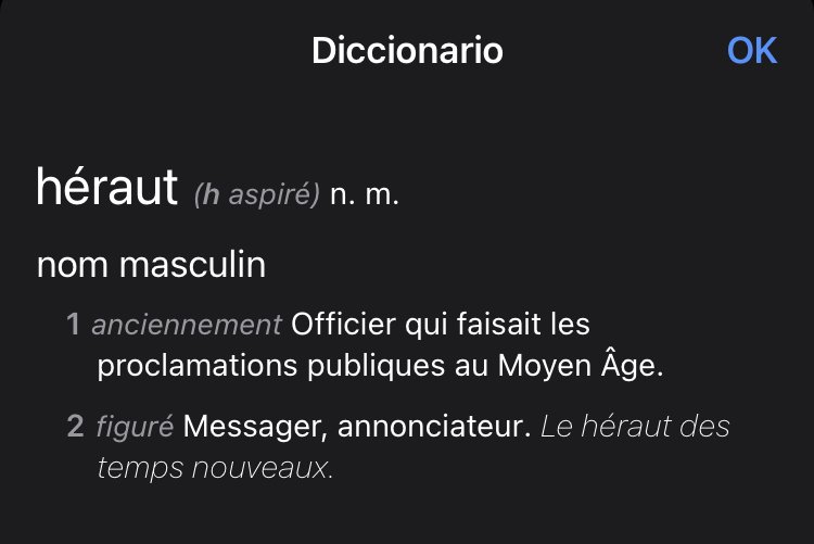 Héraut c'est genre un annonceur, un mec qui annonce des trucs (tu peux visualiser le mec au moyen âge qui déroule son parchemin et proclame des trucs royaux)