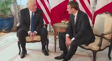 C'est préparé par l'équipe Macron à mon avis. C'est connu que Trump veut dominer la poignée de main face aux journalistes. Celui qui lâche, qui détourne la tête et qui fait une drôle de tête en premier, c'est Trump !