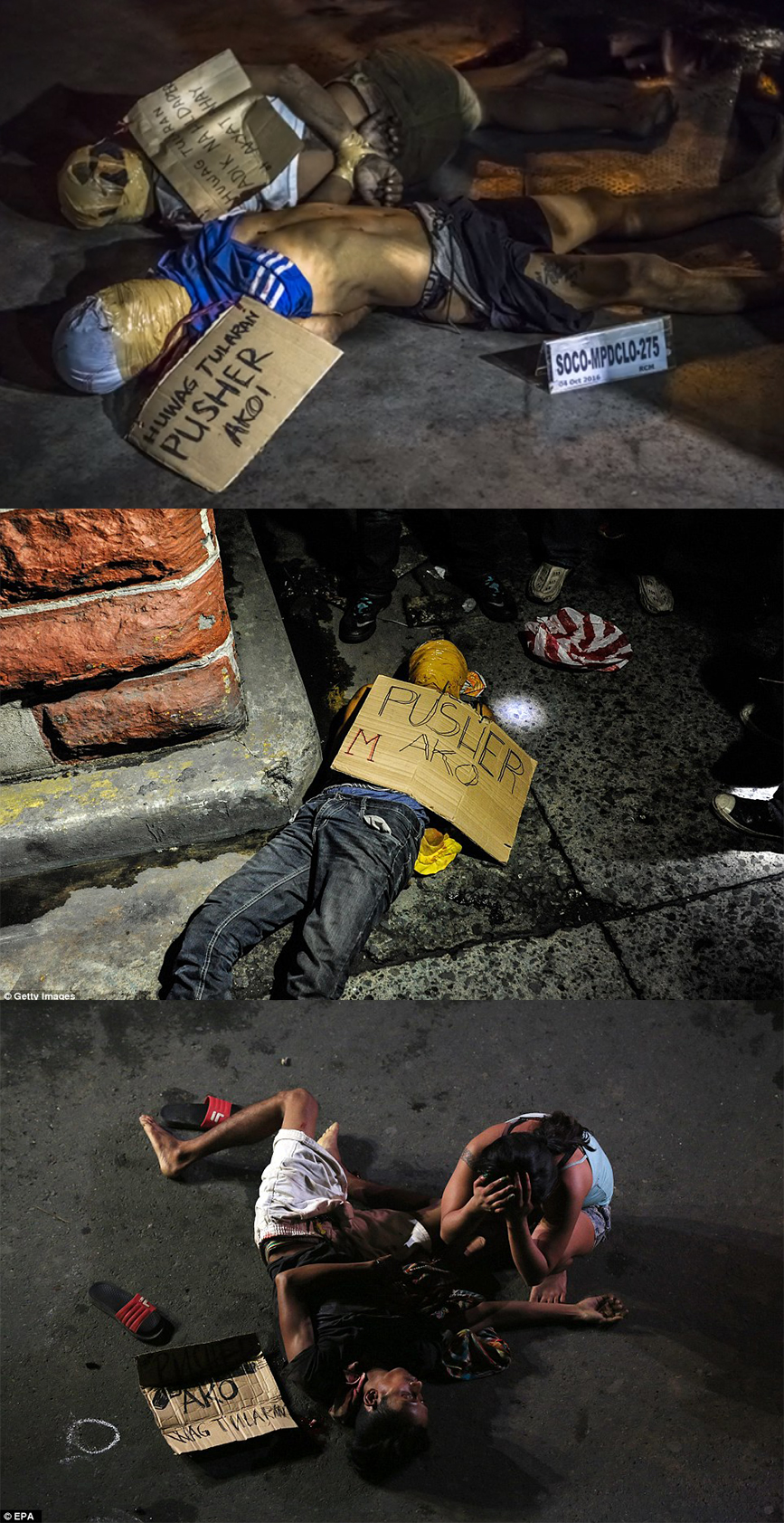 Si si aux philippines on vient chez toi ou on te course en scooter dans la rue et une balle dans la tête, avec parfois après une pancarte autour du coup avec écris "pusher.