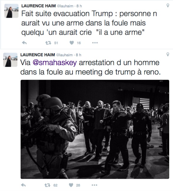 Pas beaucoup d'infos pour le moment, je te renvoi sur le twitter de Laurence Haim, journaliste qui suit la campagne de Trump : https://twitter.com/lauhaim