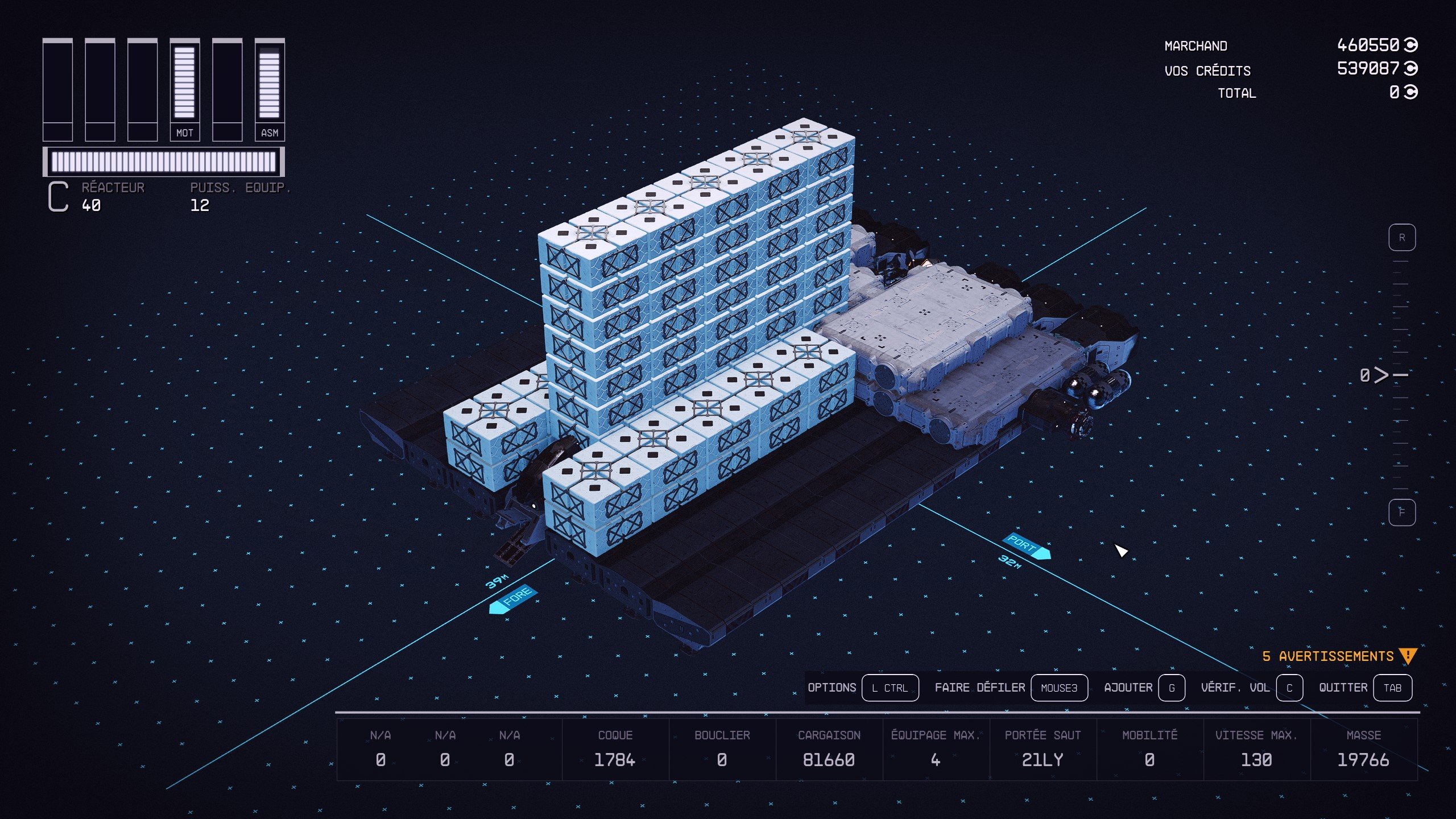 Autres infos : certaines structures ne sont dispo que chez les constructeurs (par ex, la coursive nova galactique, qui est un couloir latéral)