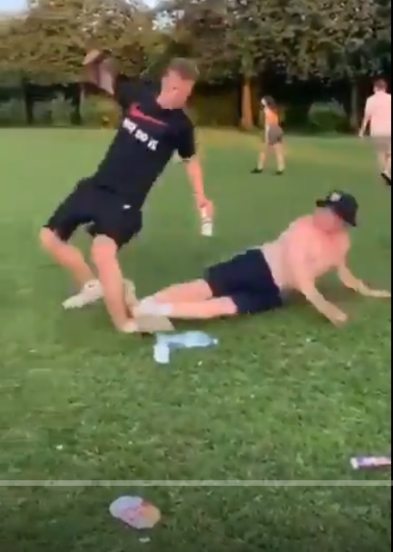 En tout cas il a de sacrés réflexes. Il l'allonge direct pour pas qu'il voie sa cheville (bon c'est un peu tard) et il sort son tel...pour faire une photo j'espère.