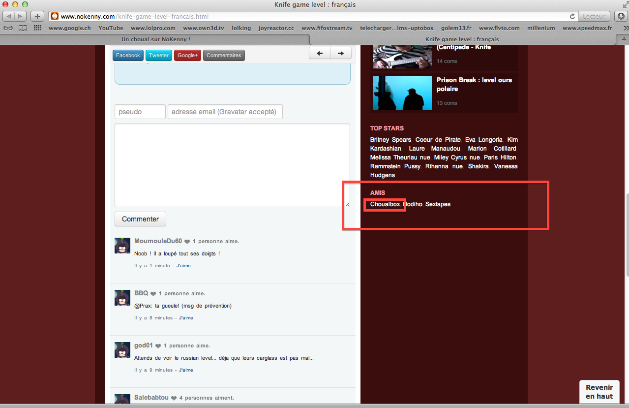 C\'est quasi les mêmes sites dans le contenu (choualbox étant par contre bcp plus complet !), mais les commentaires sur hodiho et nokenny, merci ! Entre les trolls à deux ronds et le racisme pas voilé, j\'ai fini par me casser (ou du moins ne plus lire et ne plus participer dans les commentaires)