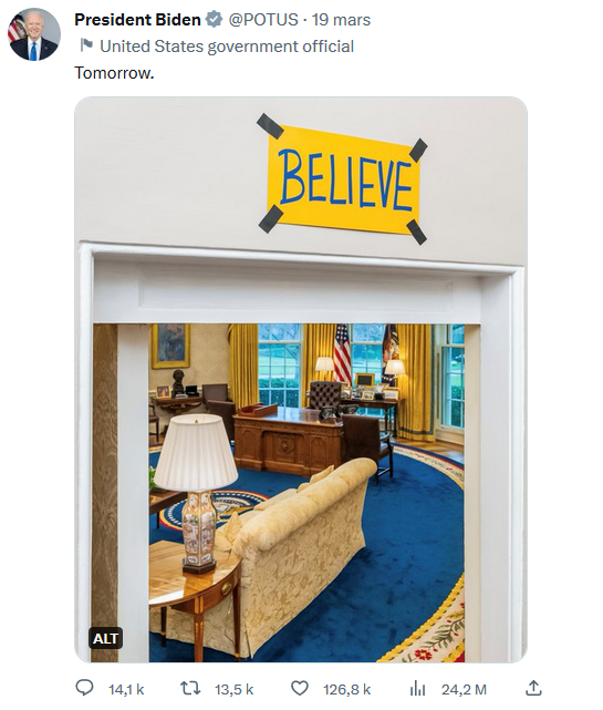 Je pense que c'est aujourd'hui que ça se joue... Potus avait balancé un tweet, que beaucoup avaient associés à l'Ukraine (Tendance des couleurs de la photo). Mais c'était peut être en rapport avec Trump...